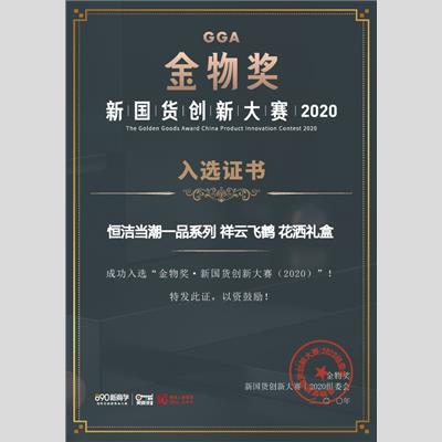 頒發(fā)單位:金物獎-新國貨創(chuàng)新大賽2020組委會