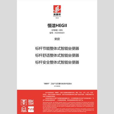 獎 項:2018中國家居品質產品(恒潔Q9智能一體機)