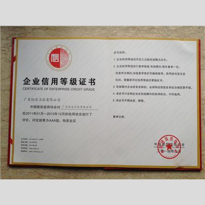 獎(jiǎng) 項(xiàng):企業(yè)信用等級證書AAA級