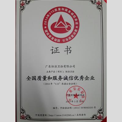 獎(jiǎng) 項(xiàng):全國(guó)質(zhì)量和服務(wù)誠(chéng)信優(yōu)秀企業(yè)