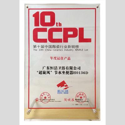 獎(jiǎng) 項(xiàng):第十屆中國(guó)陶瓷行業(yè)新銳榜“年度最佳產(chǎn)品”--“超旋風(fēng)”超節(jié)水坐便器H0136D