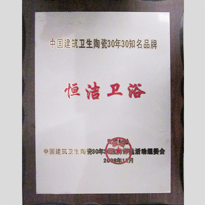 頒發單位:陶城報社、中國建筑衛生陶瓷30年30知名品牌評選活動組委會