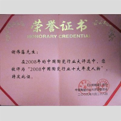 獎 項:2008中國陶瓷行業十大年度人物