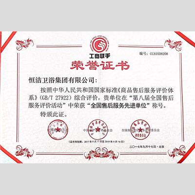 獎(jiǎng) 項(xiàng):全國(guó)售后服務(wù)先進(jìn)單位