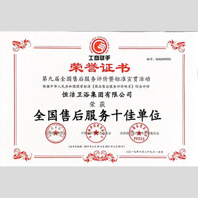 獎(jiǎng) 項(xiàng):全國(guó)售后服務(wù)十佳單位