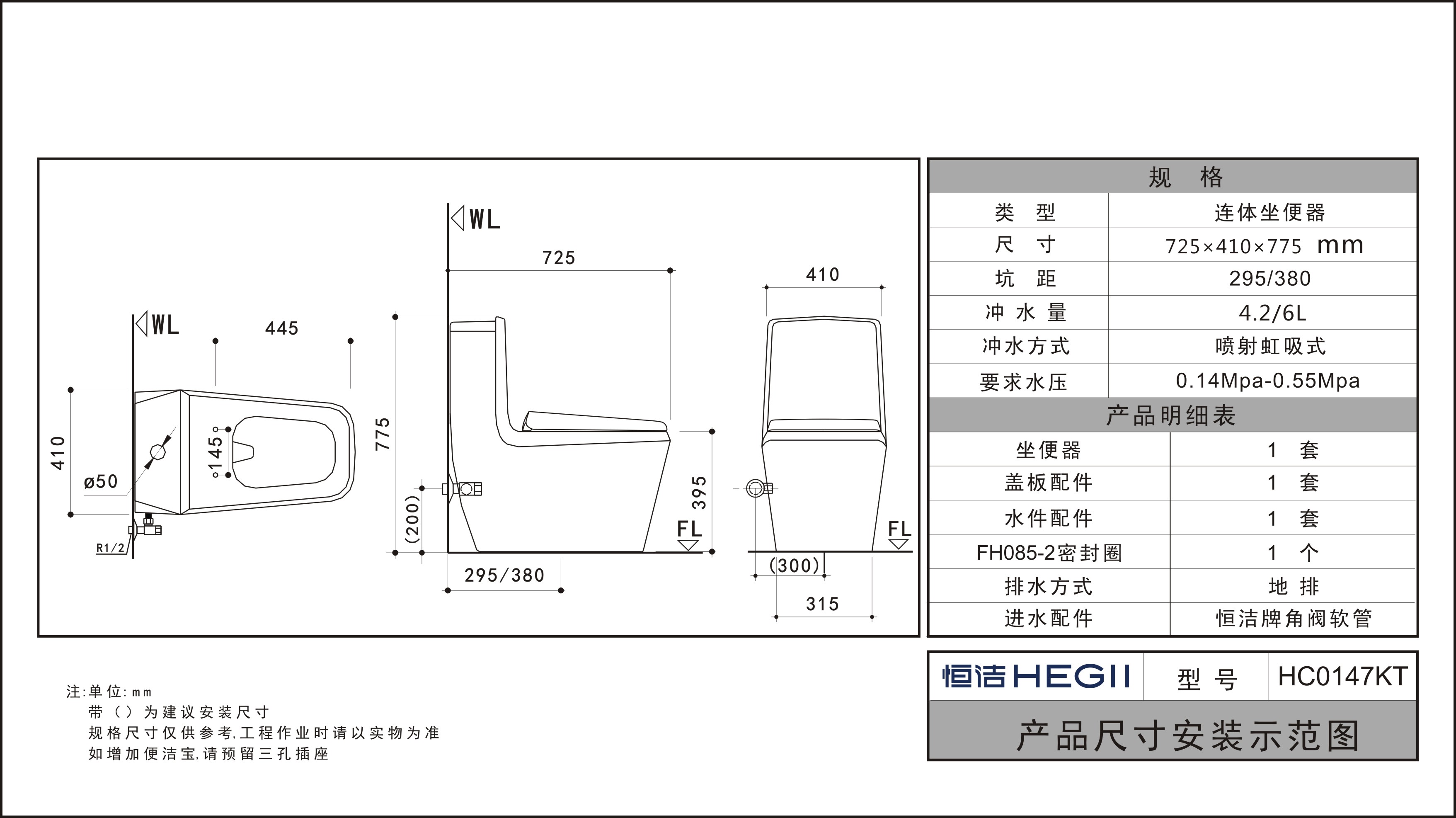 管徑加粗加大50mm,虹吸力更強(qiáng)